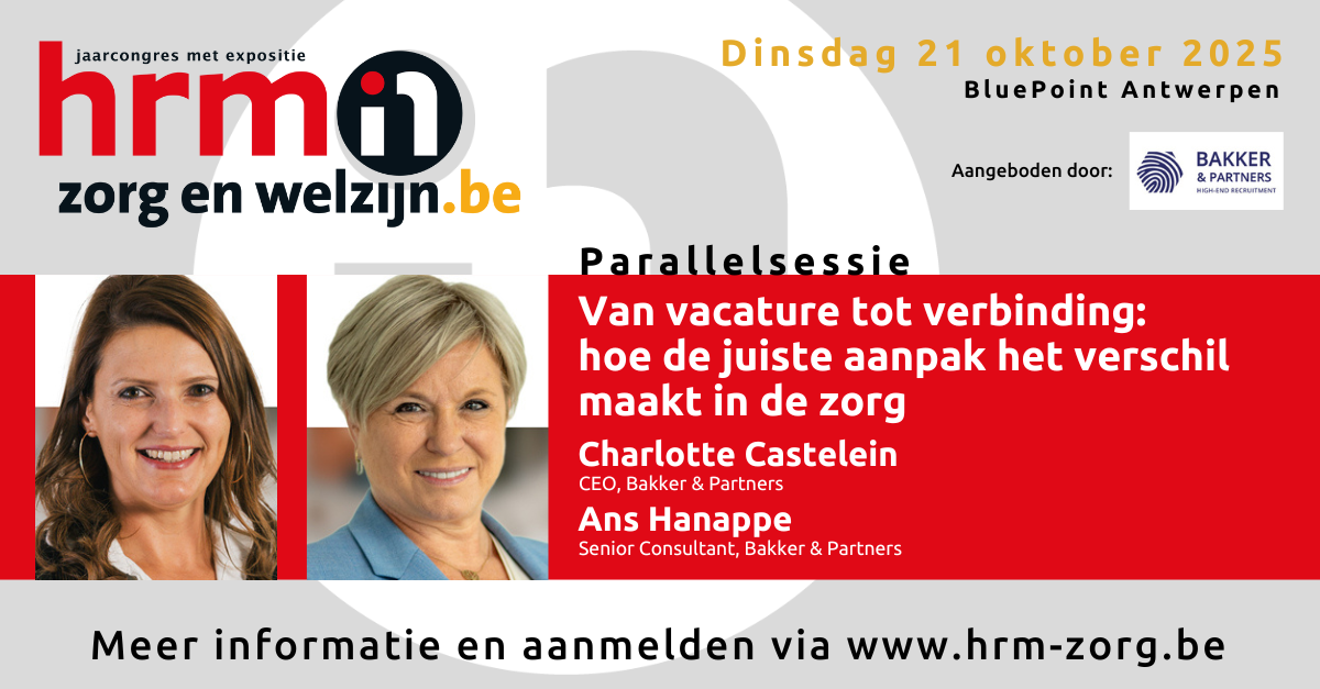 In deze praktijkcase delen Charlotte Castelein en Ans Hanappe inzichten uit onze ervaring met rekrutering in de zorgsector. We focussen op de ‘candidate experience’: hoe de manier waarop je kandidaten benadert, begeleidt en engageert, een directe impact heeft op het aantrekken én behouden van talent. Met concrete voorbeelden tonen we hoe mensgericht rekruteren bijdraagt aan een sterk werkgeversmerk, een kortere time-to-hire en een betere culturele match. In tijden van krapte is élke kandidaat kostbaar – en een toekomstgerichte zorgorganisatie weet dat investeren in beleving begint vóór de eerste werkdag.